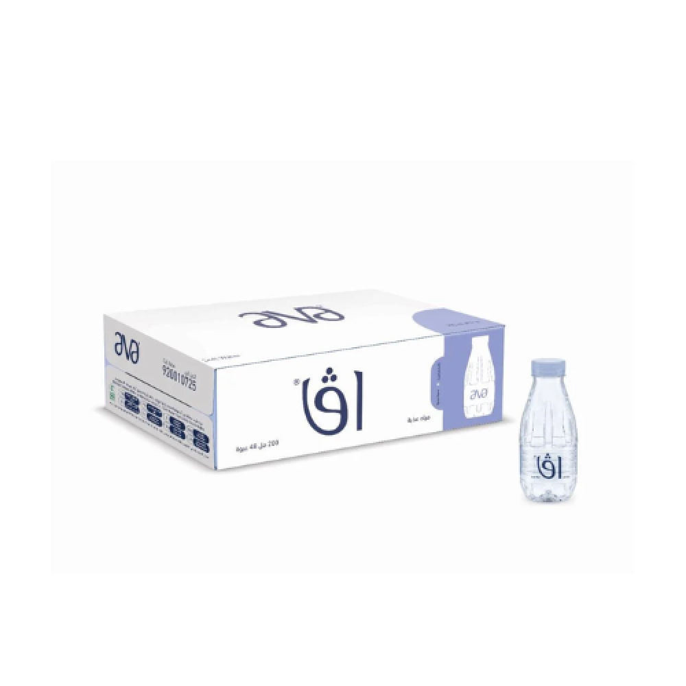 كرتون مياه اڤا يحتوي على 48 عبوة حجم 200مل ، من مياه الآبار الطبيعية الجوفية العذبة في منطقة سدير ، مياه شرب صحية بقيمة غذائية متوازنة وجودة عالية تلبي احتياج الإنسان. كرتون متوسط الحجم 9.6 لتر/كجم. مصمم بفتحة جانبية لسهولة الفتح والمناولة.